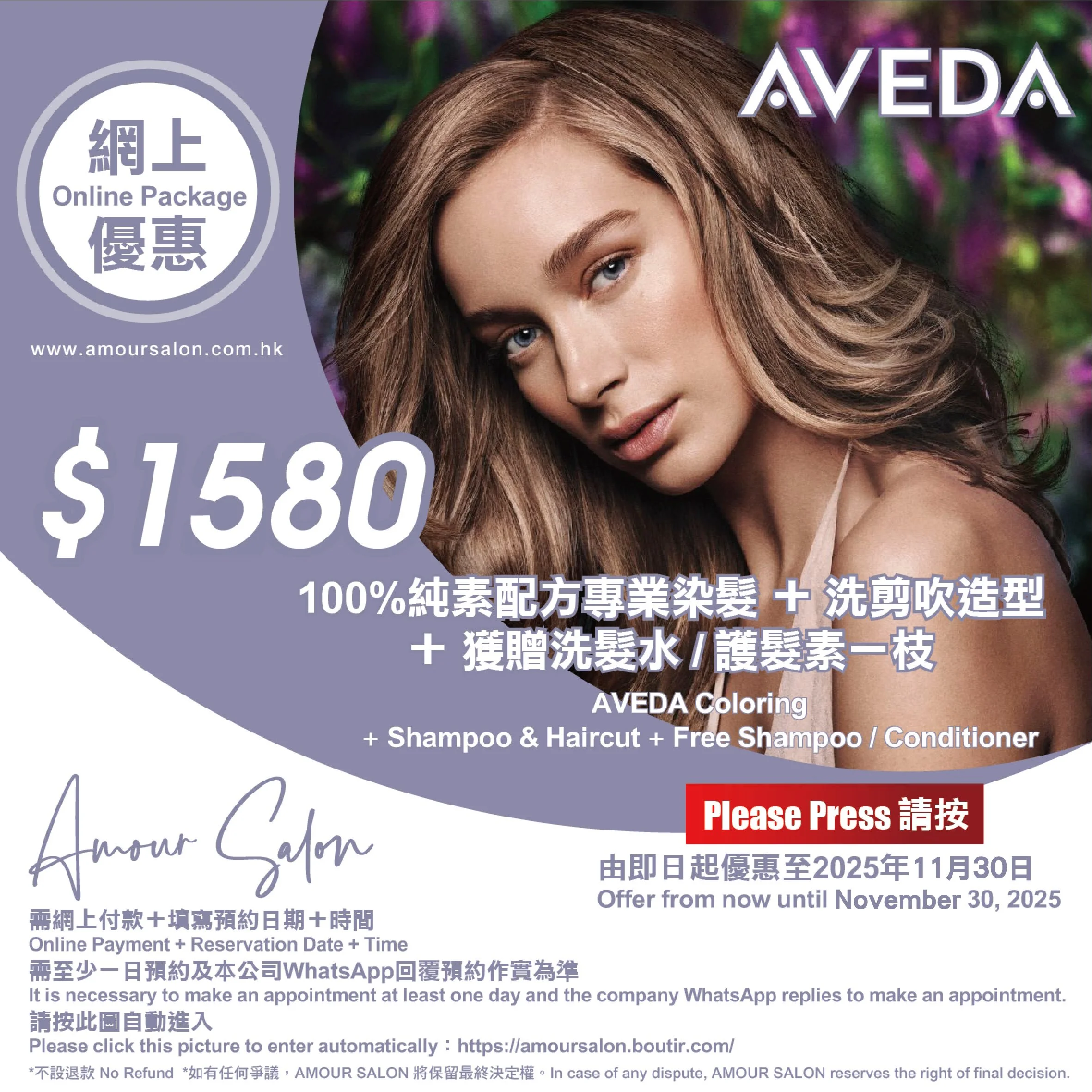 $1580 AVEDA 100%純素配方專業染髮 Coloring+洗剪吹造型 Shampoo & Haircut+獲贈洗髮水/護髮素一枝 Free Shampoo / Conditioner