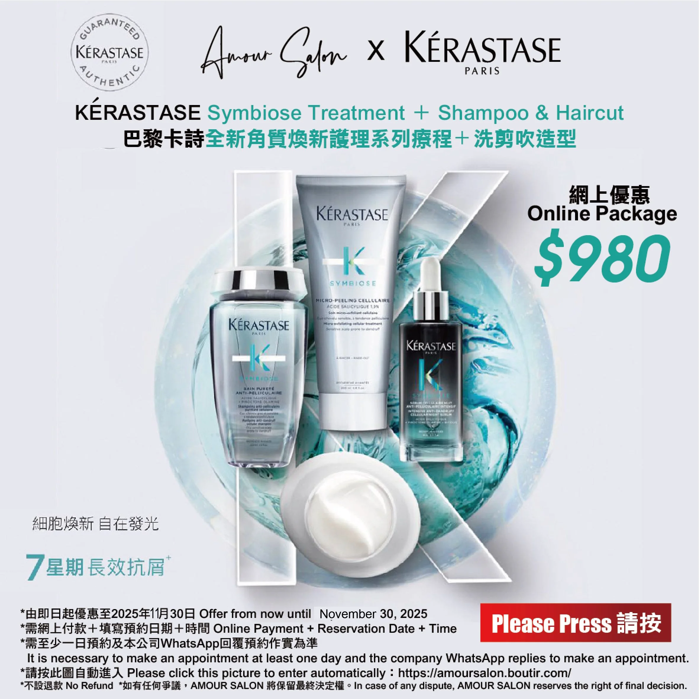 $980 KÉRASTASE全新角質煥新護理系列療程 Symbiose Treatment + 洗剪吹造型Shampoo & Haircut