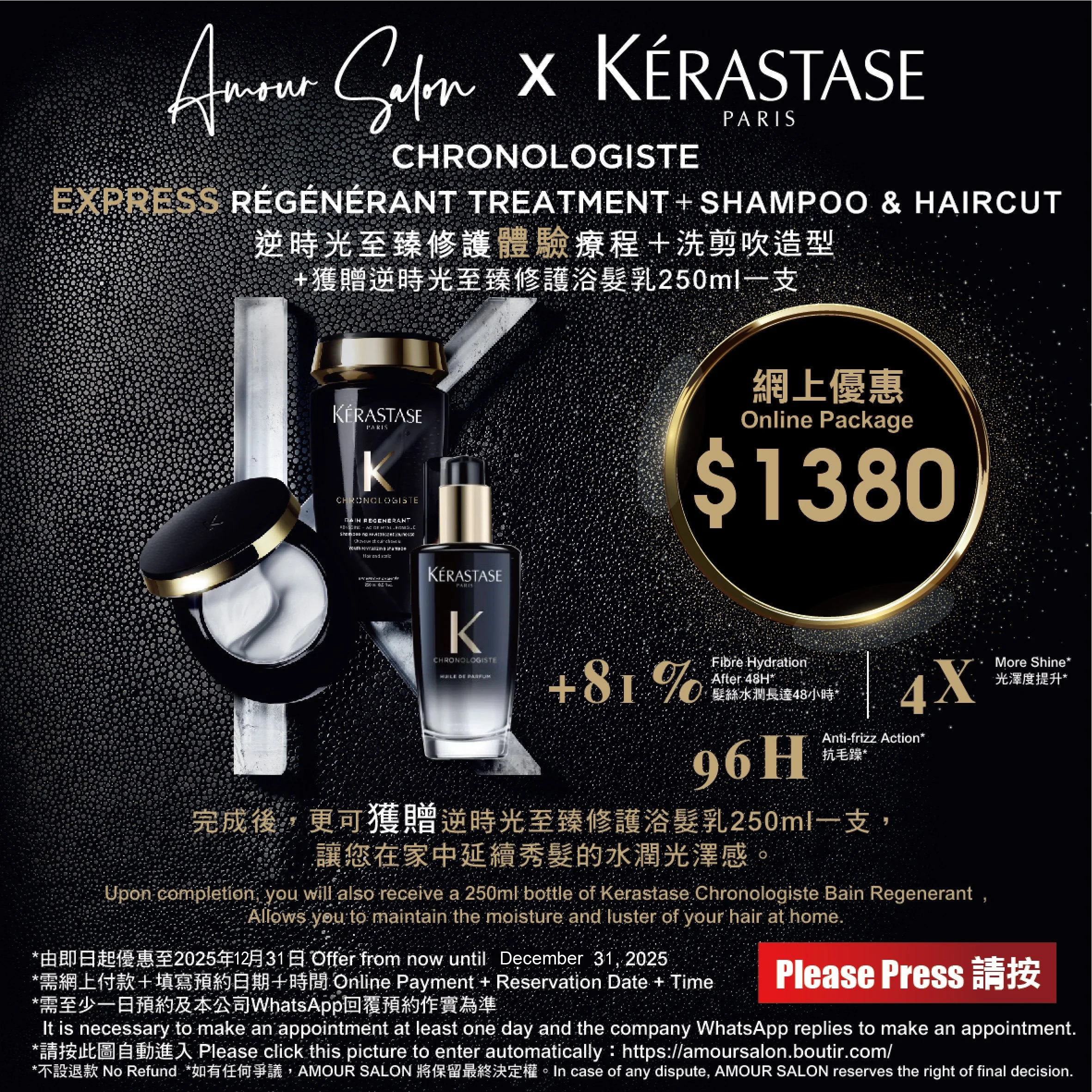 +獲贈逆時光至臻修護浴髮乳250ml一支receive a 250ml bottle of Kerastase Chronologiste Bain Regenerant